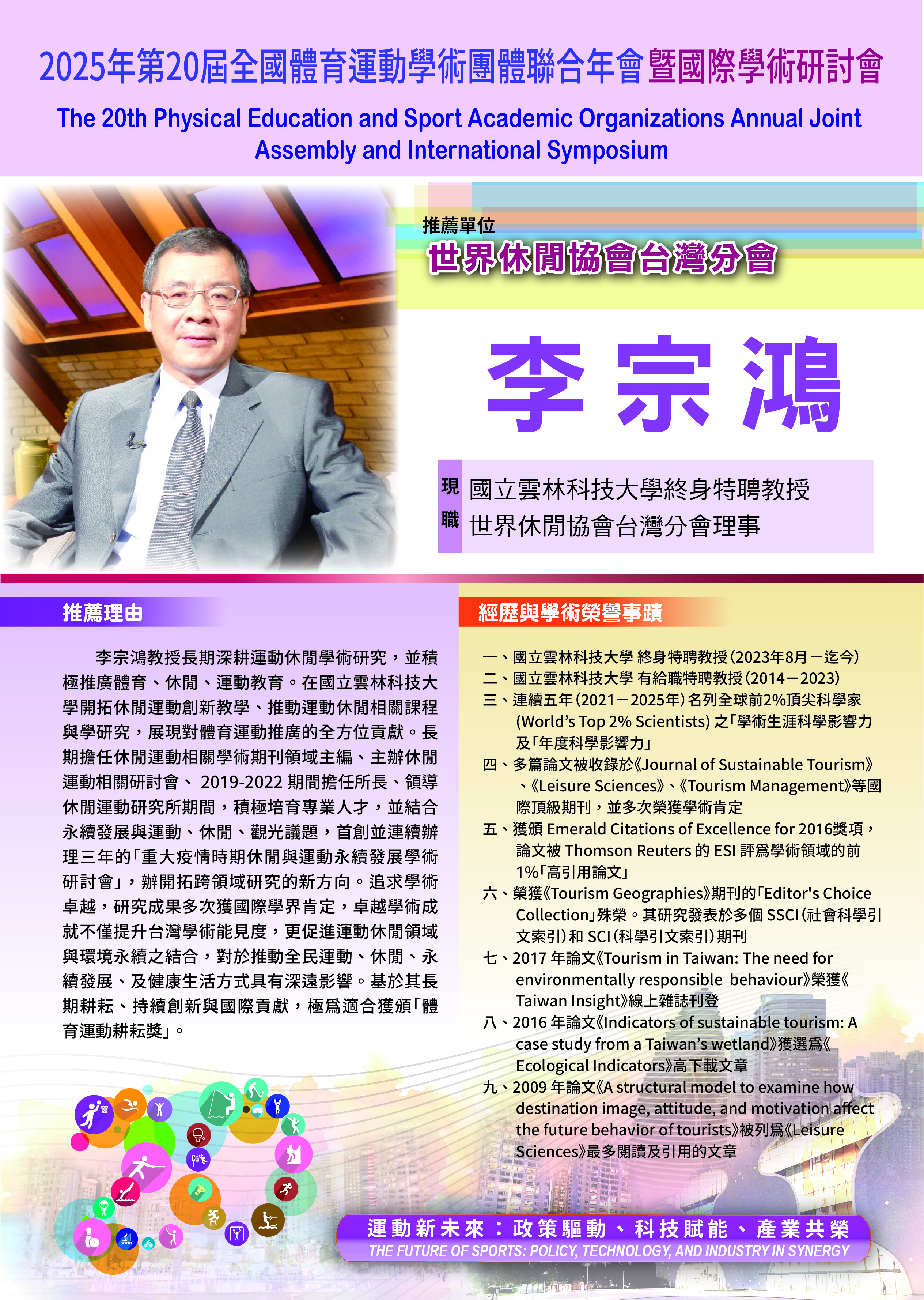 2025/11/05 賀!!李宗鴻老師榮獲 2025年全國體育運動學術團體聯合年會之「體育運動耕耘獎」
